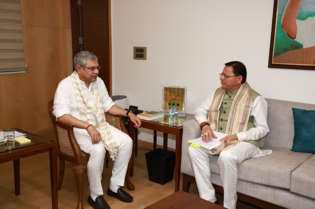 नई दिल्ली, 8 अक्टूबर 2025: उत्तराखण्ड के मुख्यमंत्री श्री पुष्कर सिंह धामी ने बुधवार को नई दिल्ली में केंद्रीय रेल मंत्री श्री अश्विनी वैष्णव से भेंट कर राज्य में रेल अवसंरचना के विकास पर विस्तृत चर्चा की। मुख्यमंत्री ने इस अवसर पर देहरादून और हरिद्वार रेलवे स्टेशनों को आदर्श रेलवे स्टेशन के रूप में विकसित करने की महत्वाकांक्षी योजना का प्रस्ताव रखा।