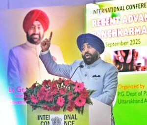 उत्तराखण्ड आयुर्वेद विश्वविद्यालय, ऋषिकुल परिसर, हरिद्वार में अंतर्राष्ट्रीय सेमिनार “Recent Advancements in Panchkarma 2025” का उद्घाटन राज्यपाल लेफ्टिनेंट जनरल गुरमीत सिंह (से नि) ने किया। दो दिवसीय इस सम्मेलन में देशभर के पंचकर्म विशेषज्ञ, वैज्ञानिक और शोधार्थी उपस्थित रहे। कार्यक्रम में कुलपति प्रो. अरुण कुमार त्रिपाठी, अपर सचिव विजय कुमार जोगदण्डे, पतंजलि योगपीठ के कुलपति आचार्य बालकृष्ण, और सेमिनार अध्यक्ष प्रो. के. के. शर्मा सहित कई गणमान्य व्यक्तित्व शामिल हुए।